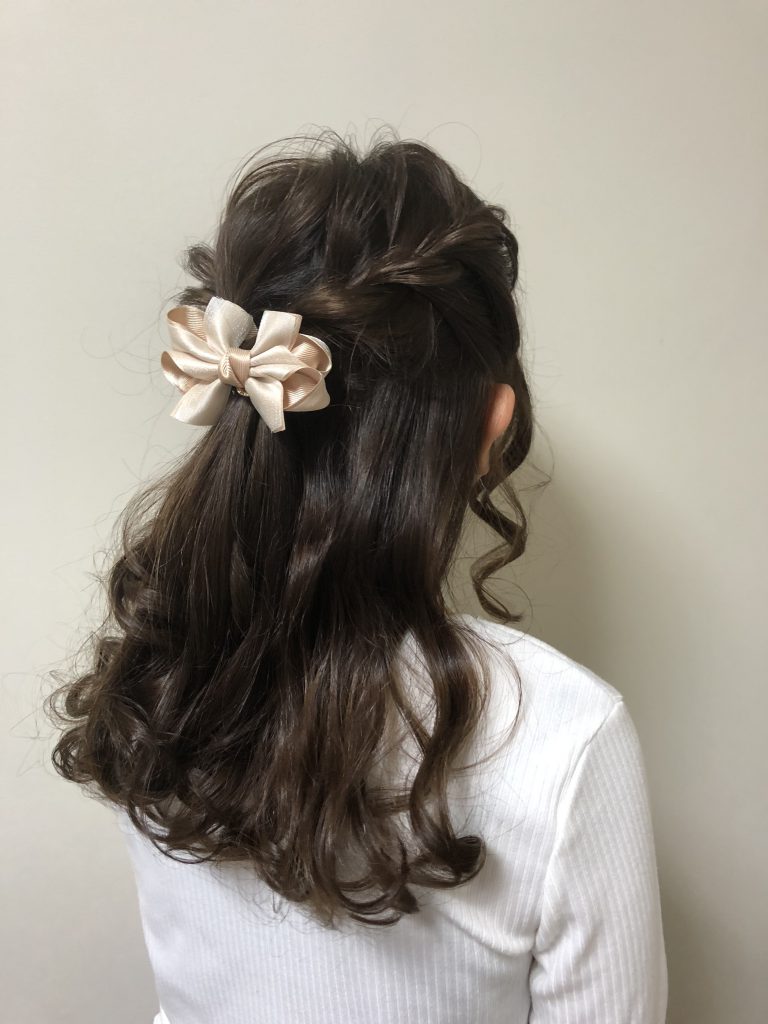 ヘアアレンジをしたのが朝6時だったので、くずれないようにあまりほぐしたりしていないですが、、、!